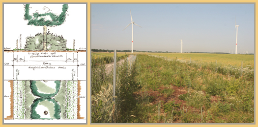 Für den Bau von Windkraftanlagen im Bebauungsplan festgesetzte Hecken von insgesamt 2 km Länge wurden in verschiedenen Bereichen der Gemarkung von Altlandsberg geplant und gepflanzt.